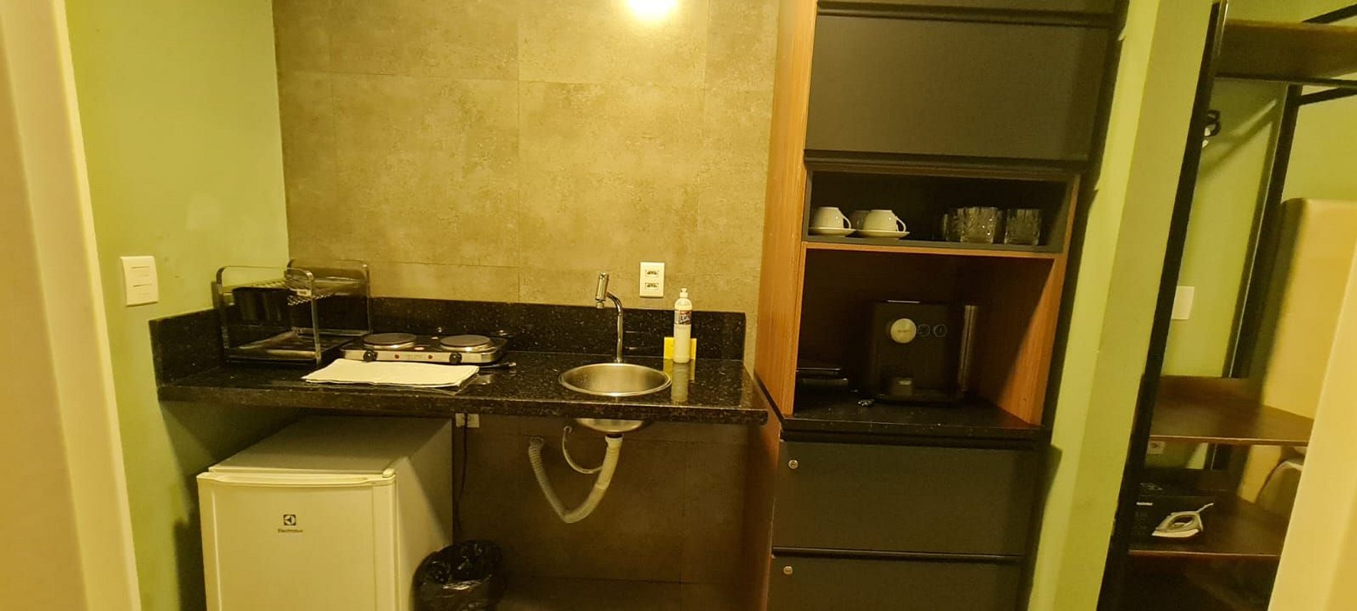 Os apartamentos são completos, com cozinha compacta, ideal para estadias curtas ou mais longas.