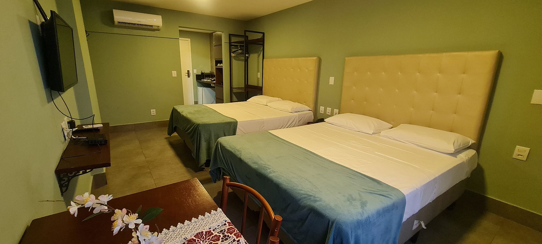Os apartamentos são completos, com cozinha compacta, ideal para estadias curtas ou mais longas.